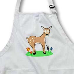 Deer and Flowers Design Apron is commercial quality product. Whether it's put to use in a restaurant or home, this apron will always help keep you clean. 100% cotton with Teflon finish for added protection. 1" wide neck and waist ties, adjustable neck strap for full and medium length aprons.