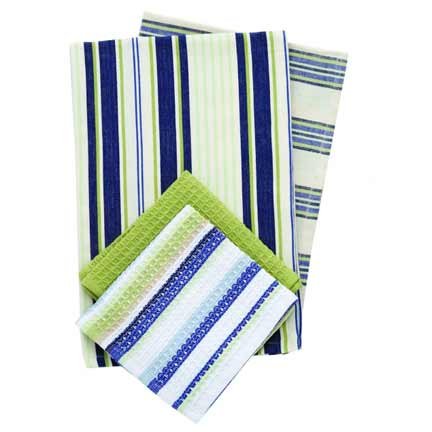 Add fun and colors into your kitchen basics. This set consists of two 18 x 28" teatowels and two 13 x 13" dishcloths. 100% cotton.