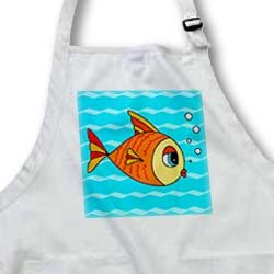 Go Fish - Goldfish Design Apron is commercial quality product. Whether it's put to use in a restaurant or home, this apron will always help keep you clean. 100% cotton with Teflon finish for added protection. 1" wide neck and waist ties, adjustable neck strap for full and medium length aprons.