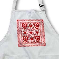 Valentine Hearts Design Apron is commercial quality product. Whether it's put to use in a restaurant or home, this apron will always help keep you clean. 100% cotton with Teflon finish for added protection. 1" wide neck and waist ties, adjustable neck strap for full and medium length aprons.