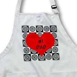 #1 Dad Design Red Apron is commercial quality product. Whether it's put to use in a restaurant or home, this apron will always help keep you clean. 100% cotton with Teflon finish for added protection. 1" wide neck and waist ties, adjustable neck strap for full and medium length aprons.