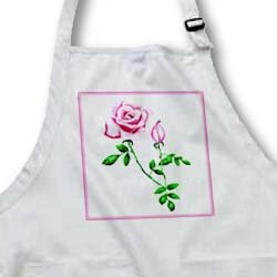 This artwork features a pretty pink rose with rosebud design and green leaves on a white background Apron is commercial quality product. Whether it's put to use in a restaurant or home, this apron will always help keep you clean. 100% cotton with Teflon finish for added protection. 1" wide neck and waist ties, adjustable neck strap for full and medium length aprons.