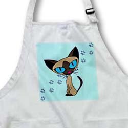 Cute Siamese Cat Pawprint Design Apron is commercial quality product. Whether it's put to use in a restaurant or home, this apron will always help keep you clean. 100% cotton with Teflon finish for added protection. 1" wide neck and waist ties, adjustable neck strap for full and medium length aprons.