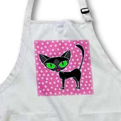 Fancy Feline Black Cat Pink Dots Design Apron is commercial quality product. Whether it's put to use in a restaurant or home, this apron will always help keep you clean. 100% cotton with Teflon finish for added protection. 1" wide neck and waist ties, adjustable neck strap for full and medium length aprons.