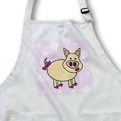 Pink Piggy Design - Happy Girl Pig Apron is commercial quality product. Whether it's put to use in a restaurant or home, this apron will always help keep you clean. 100% cotton with Teflon finish for added protection. 1" wide neck and waist ties, adjustable neck strap for full and medium length aprons.