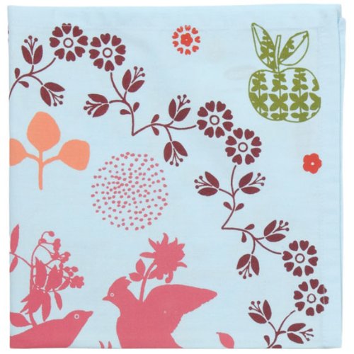 20 x 20". 100% cotton. We also stock matching placemat (sold separately) and table runner.